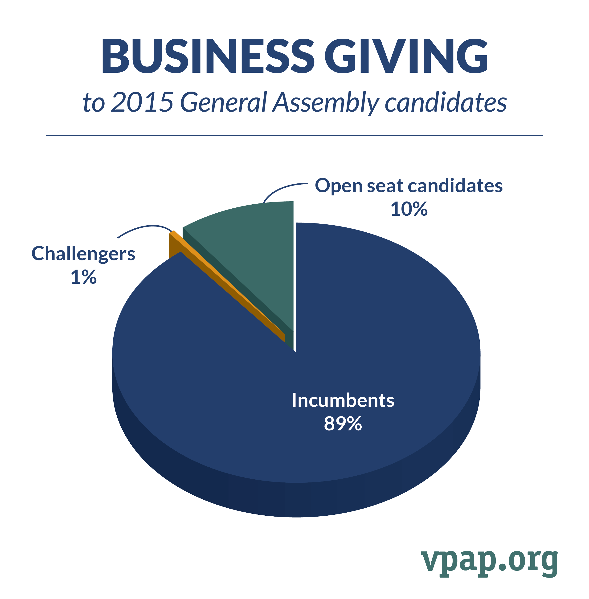 This graphic examines how businesses distributed their campaign donations between different types of candidates (incumbents, challengers, and candidates running for open seats) in the 2015 General Assembly elections.