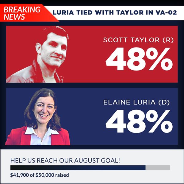 BREAKING POLL: Elaine Luria and Scott Taylor are NECK AND NECK in the race for the VA-02 House seat.
