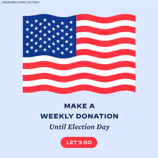 Small-dollar donors are powering me, Kamala, and Dems nationwide. Only with your contributions are we able to make last-minute digital and TV buys when we need to. Only with the support of folks who click on ads just like this one and give $5 are we able to hire staff and talk to voters. Whether or not we defeat Donald Trump and the Republicans on November 3rd depends on whether everyone who wants us to win is willing to turn their support into action.