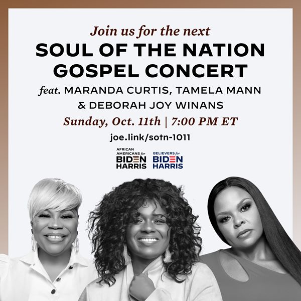 Soul of the Nation Gospel Concert: Rep. Val Demings and Female Artists - Sun, 10/11, 7 pm EST · Joe Biden for President