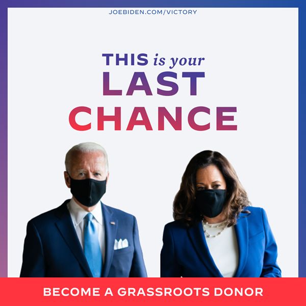 With less than 20 days to go until the election is over, I’m here to make a small, yet important, ask of you. Will you join me in donating $25 to help elect Joe, Kamala, and Democrats up and down the ballot?