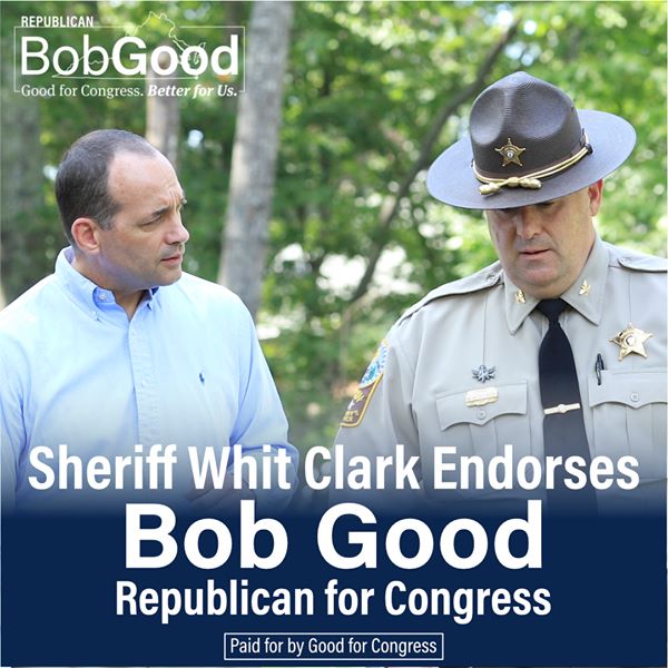 “Bob Good is a strong defender of the men and women who wear the uniform of law enforcement. No one will fight harder for us in Washington, DC." - Campbell County Sheriff Whit Clark