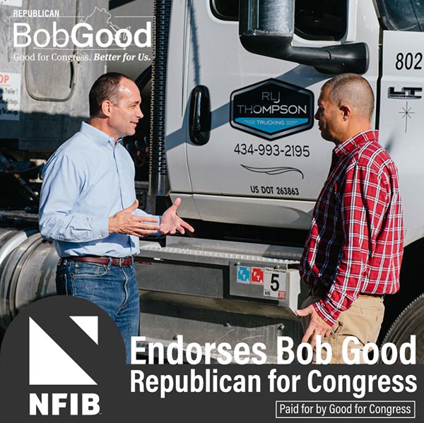 "Bob Good’s business experience lends itself well to understanding the challenges small businesses are experiencing. Good supports removing restrictions and barriers that stand between small businesses and their success. We know he will be a reliable supporter for small businesses in the U.S. House of Representatives.” - NFIB National Political Director Sharon Sussin