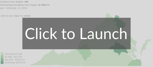 VPAP has released new interactive maps that show where in Virginia candidates for Governor, Lt. Governor, and Attorney General recieved donations in the second half of 2016.