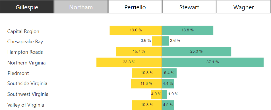 VPAP's latest visualization illustrates the portion of votes each gubernatorial primary candidate received by region.